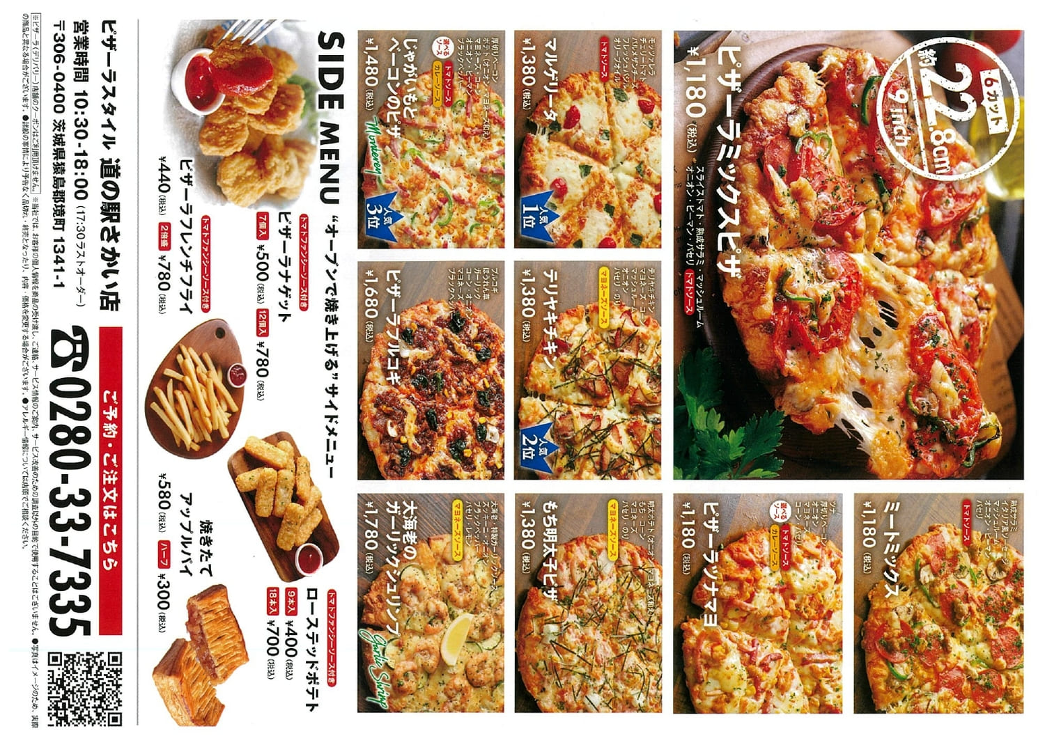 また、記載以外に「道の駅さかい店限定メニュー」や「季節限定メニュー」もお選び頂けます(2枚目のピザになります)。