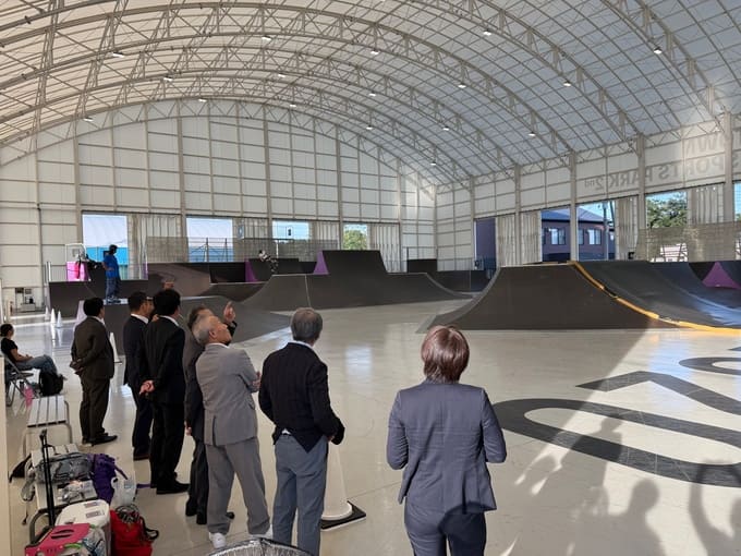 前半は、座学による講義と質疑応答を行いました。後半は、PFI住宅、アーバンスポーツパーク、citywave Tokyo Sakaimachi(人工波乗り施設)、S-WORK+KIDS(子育て支援センター)などを視察しました。