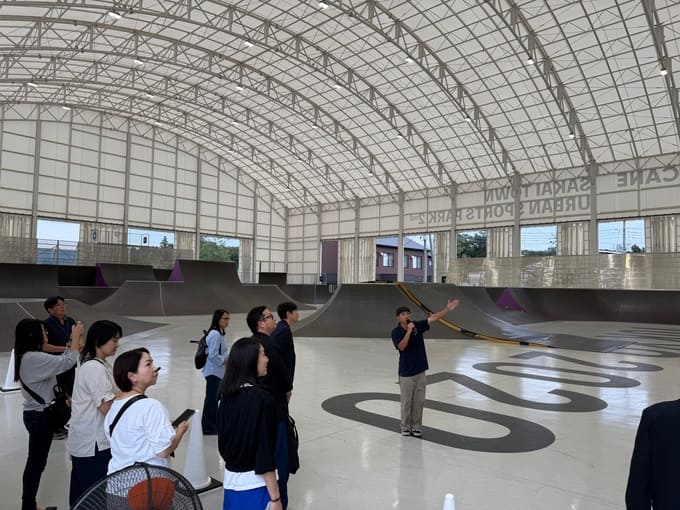 前半は、座学による講義と質疑応答を行いました。後半は、PFI住宅、S-Lab 3rd(干し芋第2工場)、S-Lab 4th(うなぎ加工場)、アーバンスポーツパークなどを視察しました。
