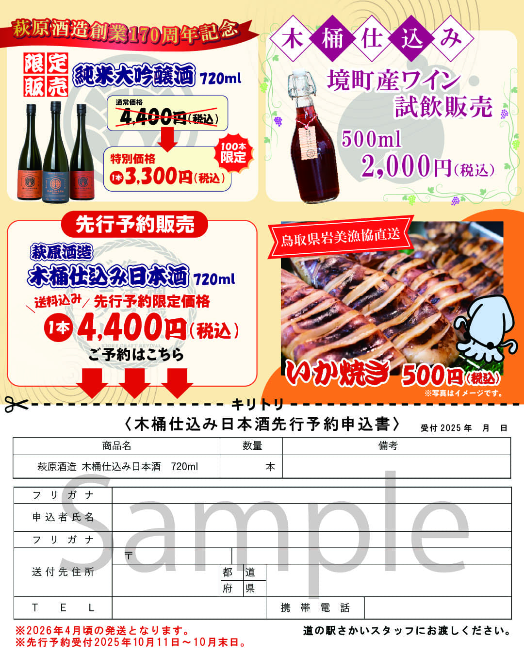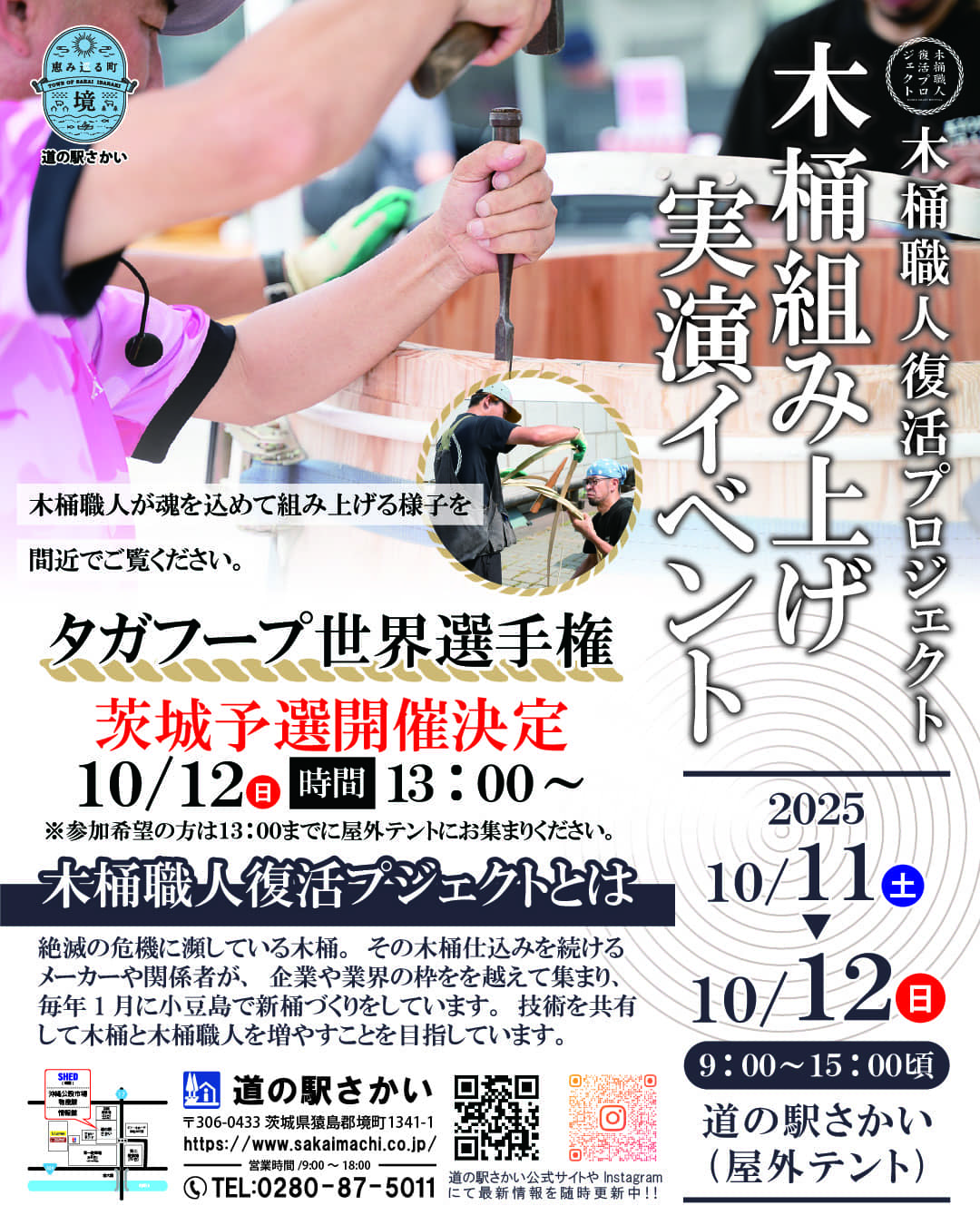 10月11~12日の2日間、萩原酒造創業170周年を記念いたしまして、道の駅さかいで木桶の組み上げ実演イベントを開催します!