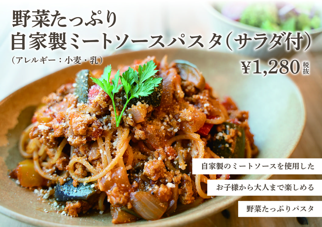 そんな中、人気メニューだった『 ミートパスタ 』が、4月から野菜たっぷりにリニューアルして再登場しました!